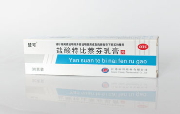 【产品名称】 【成 份】 【性 状】 【适 应 症】 【规 格】 【包 装】 | 通用名称:盐酸特比萘芬乳膏 英文名称:Terbinafine Hydrochloride Cream 汉语拼音:Yansuan Tebinaifen Rugao 本品主要成分为:维A酸。 化学名称:本品每克含主要成份盐酸特比萘芬0.01克,辅料为:白凡士林、十八醇、十六醇、单硬脂酸甘油酯、聚山梨酯80、丙二醇、苯甲醇。 本品为白色或类白色乳膏。 用于手癣、足癣、体癣、股癣、花斑癣及皮肤念珠菌病等。 1% 铝管包装,10克/支/盒,15克/支/盒,20克/支/盒,30克/支/盒 【用法用量】【不良反应】【禁忌】【注意事项】等详见说明书。 |